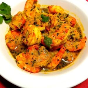 Gambas aux noix de cajou, amandes, pistaches, crème fraîche